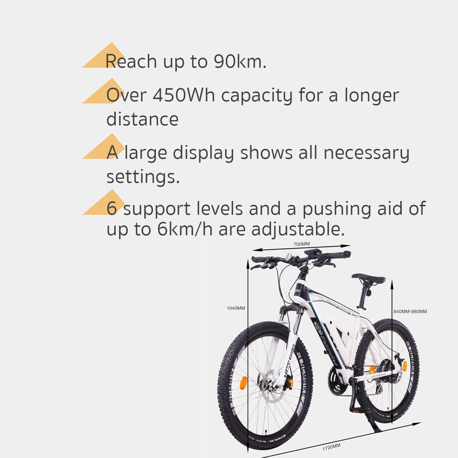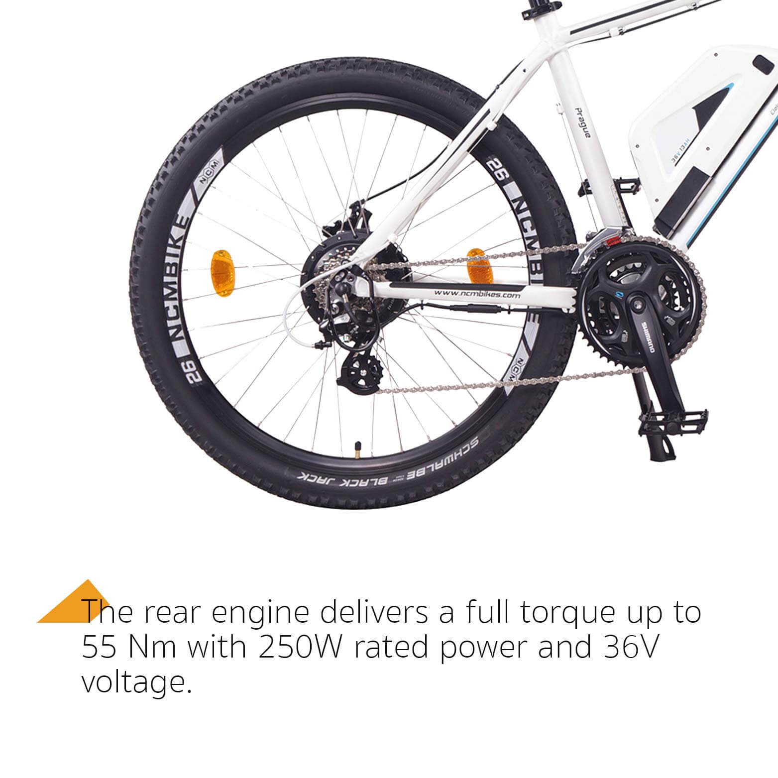 Built solid for more safety: The NCM Prague is designed to be fashionable with no compromise to functionality and safety. Mechanical Tektro disc brakes with 160mm rotors and motor inhibitor ensure a safe ride at all speeds. Front and rear Spanninga lights keep both you and the road highly visible, while internally routed cables add neatness to the sleek design.
